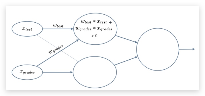 将 x_test 乘以其权重 w_test 并且与 x_grades 乘以其权重 w_grades 的结果进行求和。