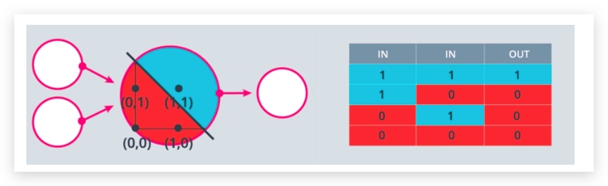 权重和偏差必须能够使得两个感知元的运算结果符合与操作。