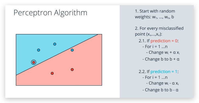 # update the weights and bias W, b, according to the perceptron algorithm,