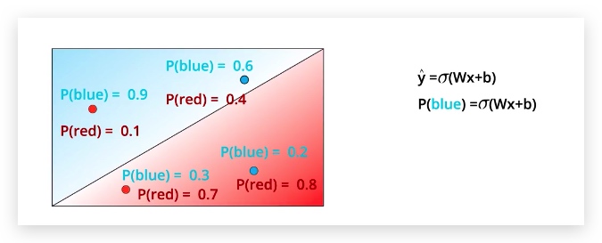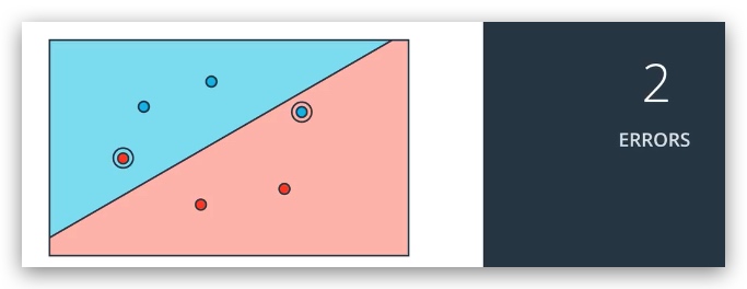 在阴影部分的数据会返回小于 0 的结果。 如果我们希望,返回小于0的结果更多一些的话, 我们可以移动这条直线,方法就是加上一个偏差(bias)