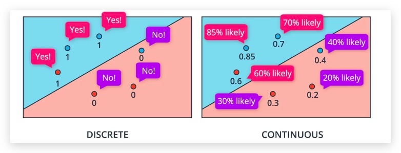 但是可能的结果是,不论我们怎么调节,正确分类的点数可能不变,这样算法就无法进行下去了,这是因为我们的误差函数是正确分类点的个数,这是一个离散的函数,其结果只能是1,2,3...这样的整数。