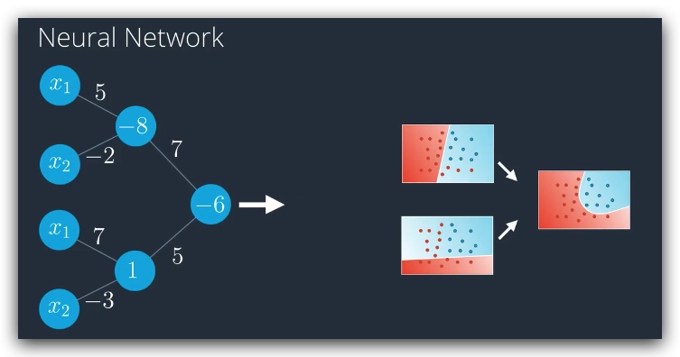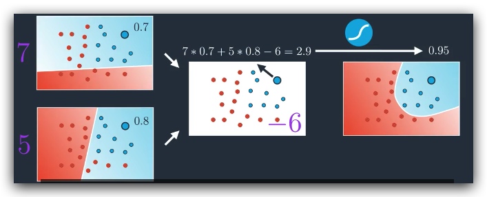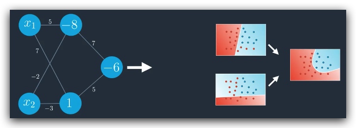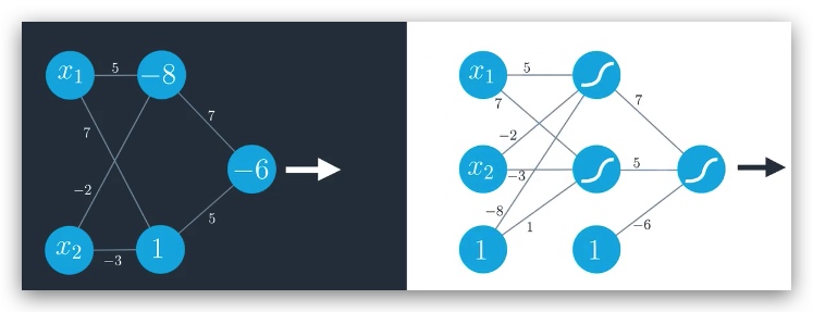 使用多个线性的模型叠加称为一个非线性模型,实际上是对神经网络的一个扩展,左图可以简化成如下形式: