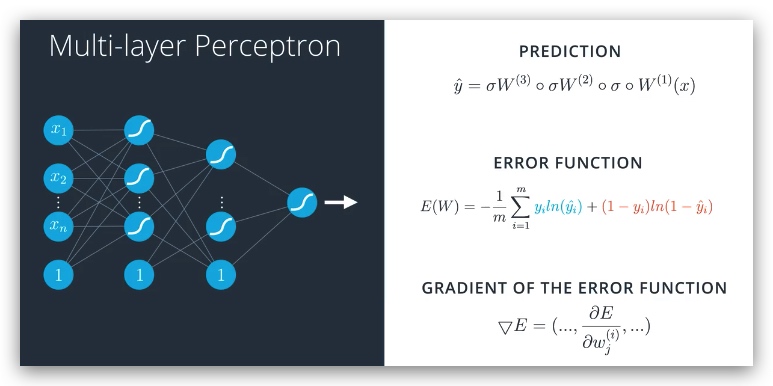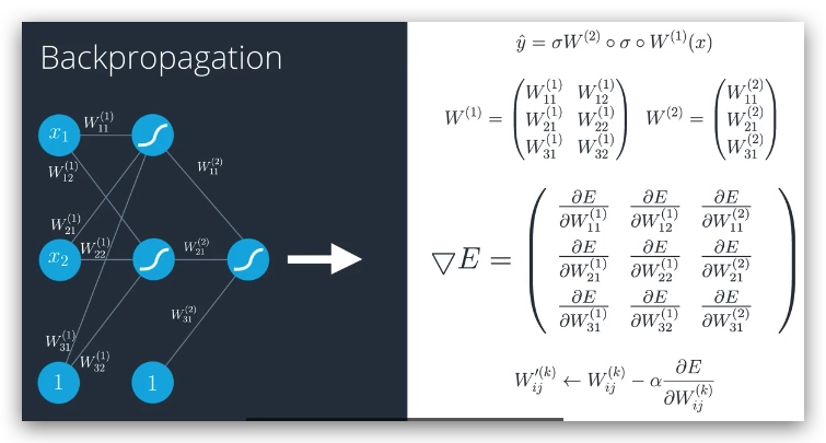 基于模型的误差函数,求其梯度(误差函数对所有权重分别求偏导数),调整权重(需要乘以一个学习速率alpha)