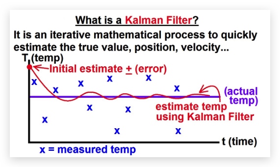 卡尔曼滤波器,可以从一组不断输入到系统的数据中,非常快速的推断出真实中(几乎),即使初始值偏差很大也没关系,卡尔曼滤波的收敛速度非常快。