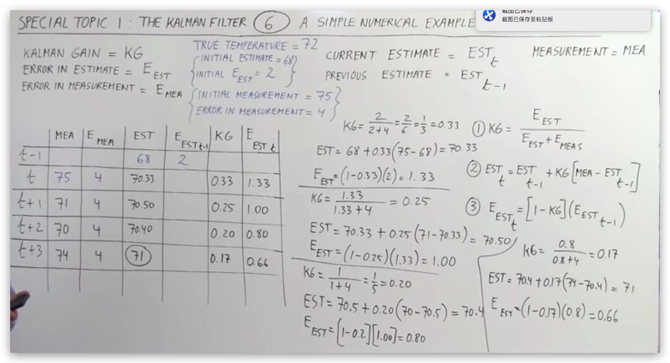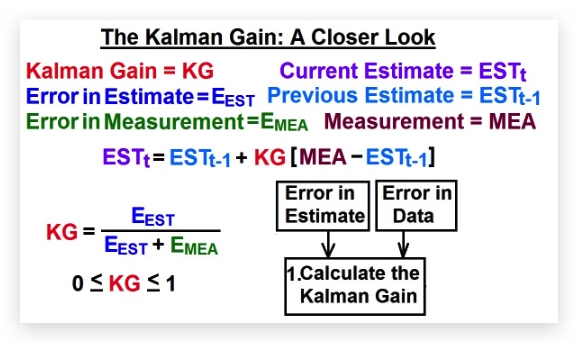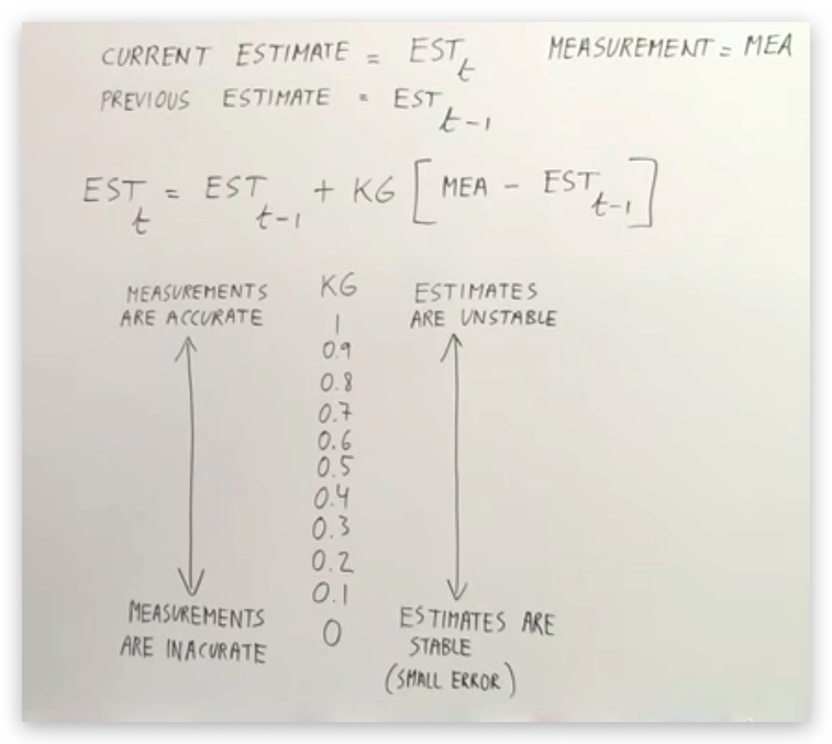 ESTt 即当前最新估计值,它等于上一次的估计值ESTt-1 + KG*[MEA-ESTt-1]