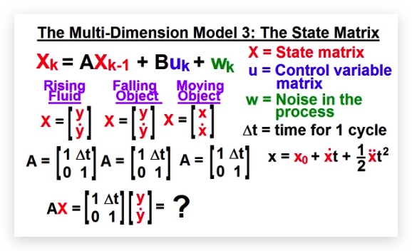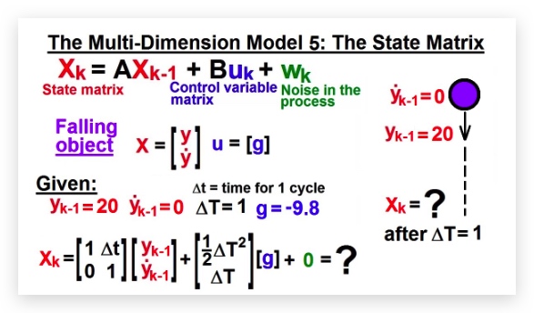 - AX即对X进行变换,新的位移为$y+\Delta t\dot y$,新的速度为$\dot y$,加速度的情况在uk中体现